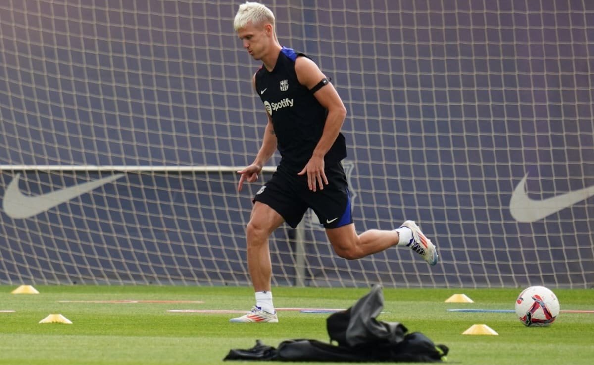 बार्सिलोना के स्पेनिश मिडफील्डर दानी ओल्मो प्रशिक्षण सत्र में।© एएफपी बार्सिलोना के कोच हांसी फ्लिक को…